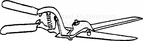 3.5 Type I. grass-cutting shears. The type I shears shall have a draw-type action whereby one blade moves toward and across the other stationary blade. The shears shall be equipped with an opening spring, positive stop(s) , and locking device. A pressure plate or similar device shall be used to keep the blades from separating under heavy pressure. The shears shall be similar to Figure 1 and comply with the following dimensions: