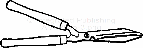 3.6 Type II. hedge-trimming shears. The type II shears shall have a scissors-type action whereby both blades move equally toward (or from) a centerline which bisects the angle of the opposing blade. The blades shall be integral with the shanks of the handgrips. The shears shall be similar to Figure 2 and comply with the following dimensions: